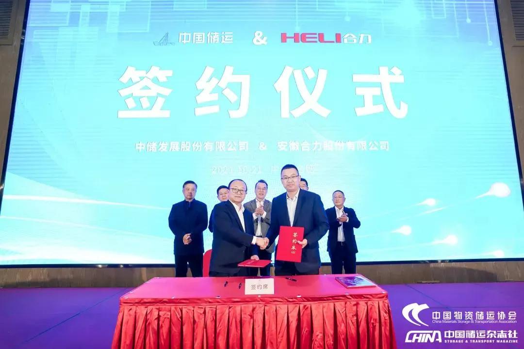 會(huì)上,中儲(chǔ)發(fā)展股份有限公司與安徽合力股份有限公司,按照“共享共建、共同促進(jìn)物流搬運(yùn)創(chuàng)新發(fā)展”的原則和目標(biāo),現(xiàn)場舉辦了2021-2022年度叉車框架合作簽約儀式,雙方將在聯(lián)合打造標(biāo)準(zhǔn)規(guī)范、打造智慧物流應(yīng)用優(yōu)秀案例等方面建立戰(zhàn)略合作。