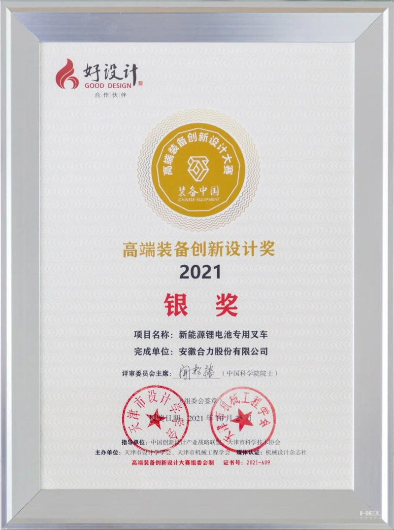 金秋十月,金風(fēng)送爽,合力新能源鋰電專用叉車在中國“好設(shè)計(jì)”暨“裝備中國”2021高端裝備創(chuàng)新設(shè)計(jì)大賽的千余件作品中脫穎而出,斬獲銀獎(jiǎng)!