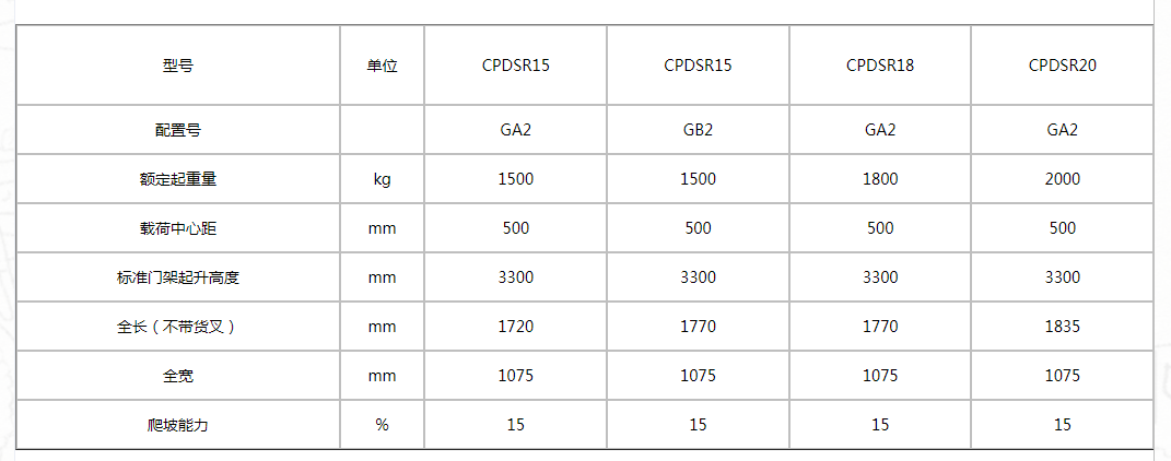G系列1.5-2噸站式三支點蓄電池平衡重式叉車
